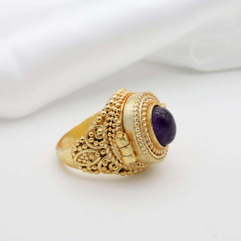 แหวนพลอยอเมทิสต์ธรรมชาติสุดพรีเมี่ยมสำหรับวันครบรอบของผู้หญิงทำจากโลหะทองเหลืองและหินขายส่ง