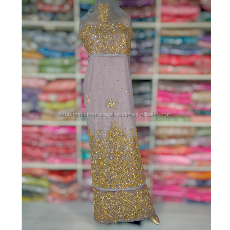 Heavy Beaded Net Lace + Silk Fabric