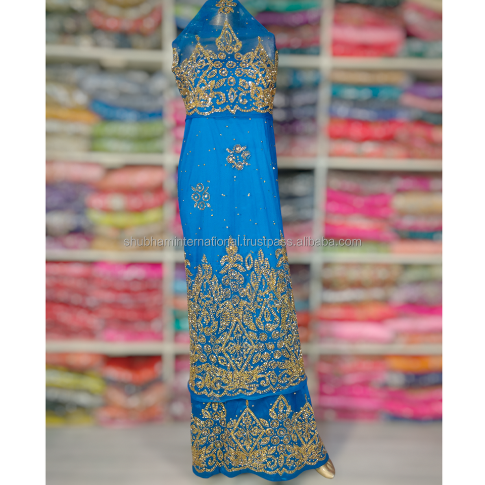 Super Quality African Wedding Stone Beaded Nigerian George Fabric Women Dress High Quality for Summer Wear