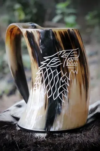 แก้วมักทำจากไวกิ้งขัดทำมือขนาดใหญ่ทำจากเขาควายสินค้าคุณภาพสูงสำหรับร้านอาหารดื่ม