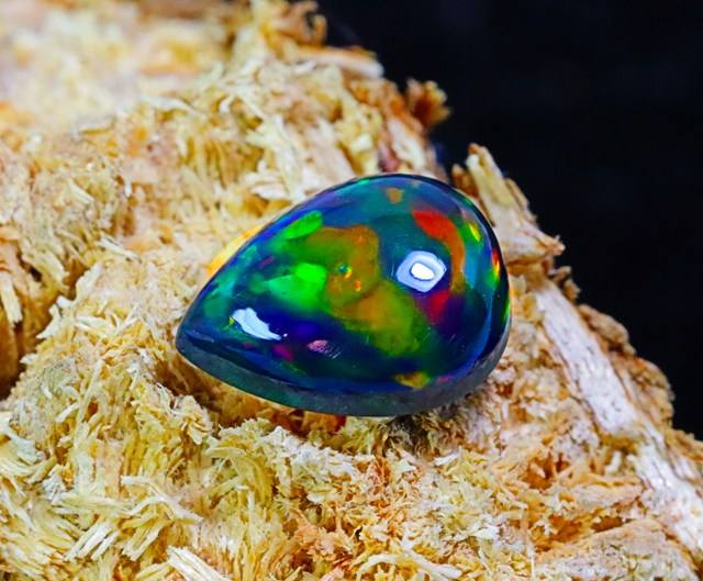 Super Quality Ethiopian Black Opal Gemstone Welo Cabochon Loose Black opal Gems Multi Fire Pear Shape Natural Stone At Wholesale