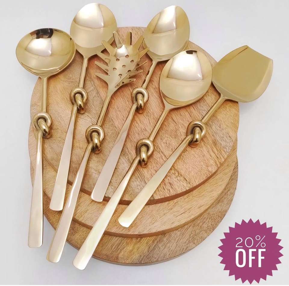 ชุดช้อนส้อมสแตนเลสคุณภาพสูง ทนทาน หรูหรา ดีไซน์ทันสมัย ขัดเงาแบบกระจก สีทอง ผลิตด้วยมือ