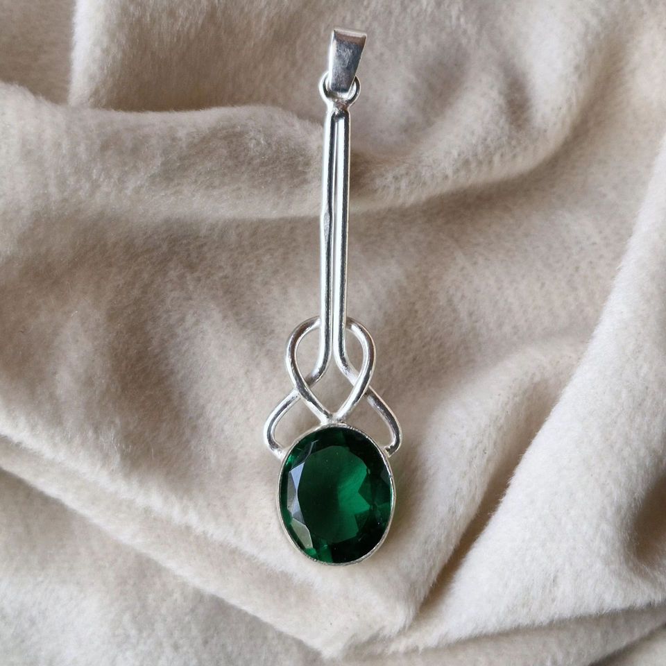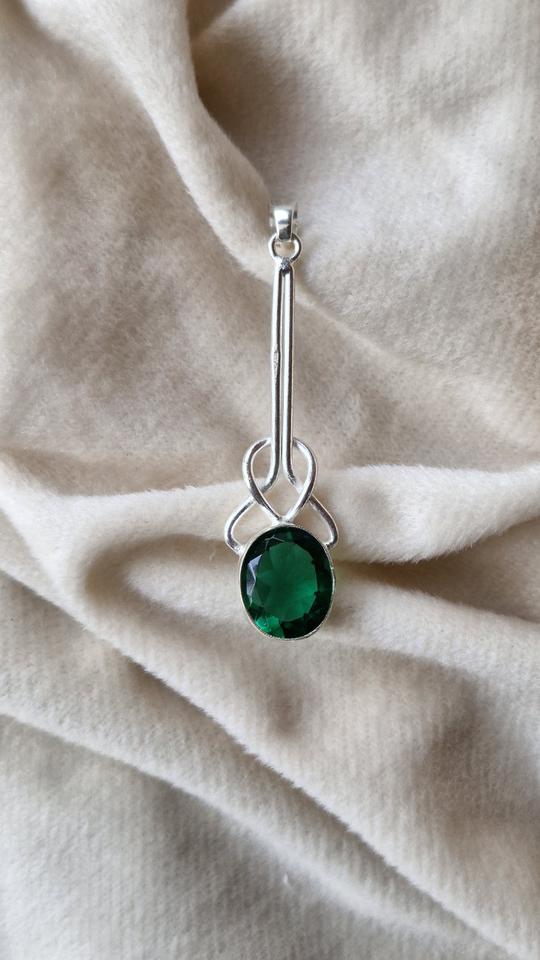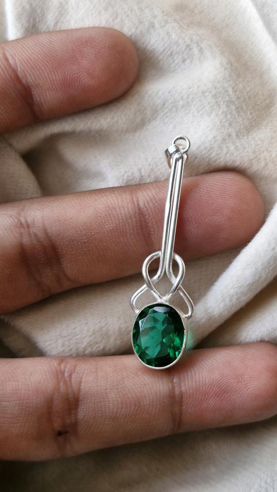 จี้มรกตสีเขียวคุณภาพสูง925สเตอร์ลิงทำด้วยมืออัญมณีของขวัญเครื่องประดับ