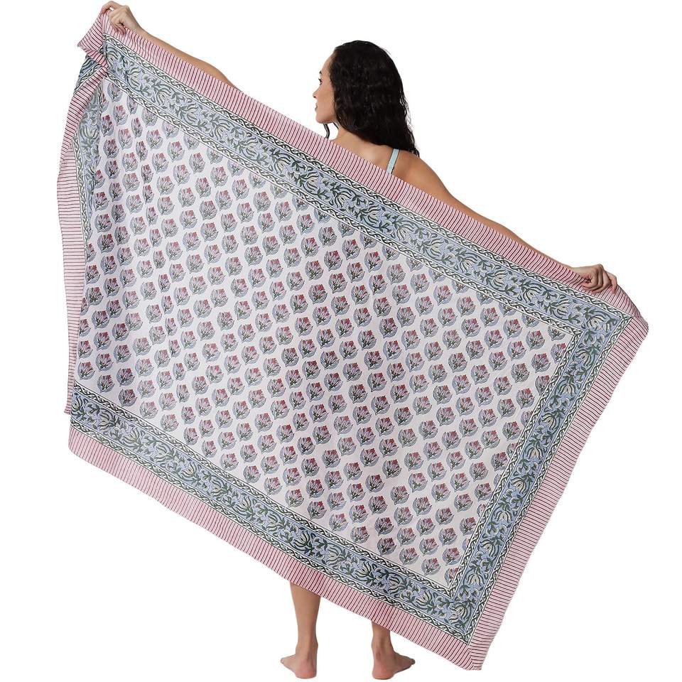 ผ้าซิ่นพิมพ์ลายบล็อกคุณภาพเยี่ยมสำหรับผู้หญิง ผ้าคลุมบิกินี่น้ำหนักเบา เหมาะสำหรับใส่ไปเที่ยวทะเลและรีสอร์ทในช่วงฤดูร้อน