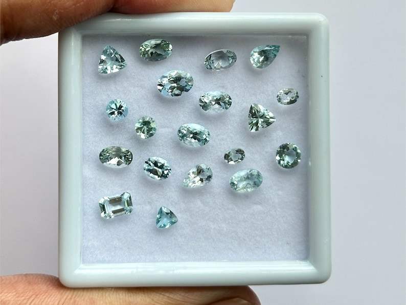 พลอยอะความารีนคุณภาพเยี่ยม งานแฮนด์เมด รูปทรงผสมผสาน สีฟ้าสดใส สะอาดพิเศษ คุณภาพสูง ขนาด 4-8 มม. น้ำหนัก 1-3 กะรัต เกรดสาม