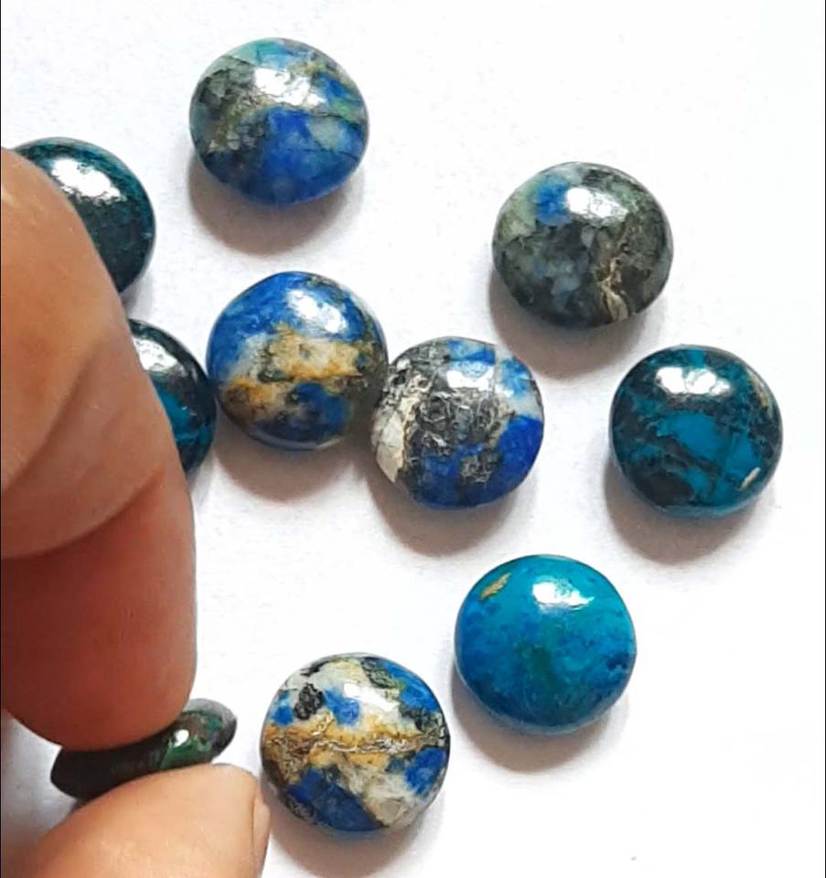 ลูกปัด Larimar ทรงกลมที่มีคุณภาพเยี่ยมลูกปัดอัญมณีทรงหลังเบี้ยได้รับการรับรองจาก Hari OM Creations สำหรับเครื่องประดับสร้อยคอ