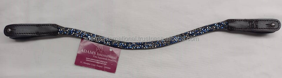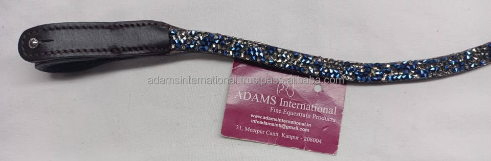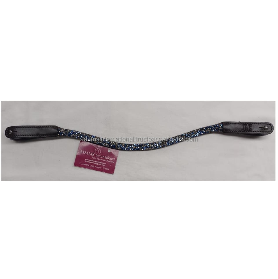 สายคาดหน้าผากม้าหนังคุณภาพเยี่ยมสำหรับขี่ม้า ตกแต่งโลโก้ตามสั่ง ประดับคริสตัลวิบวับ พร้อมลายปักสวยงาม