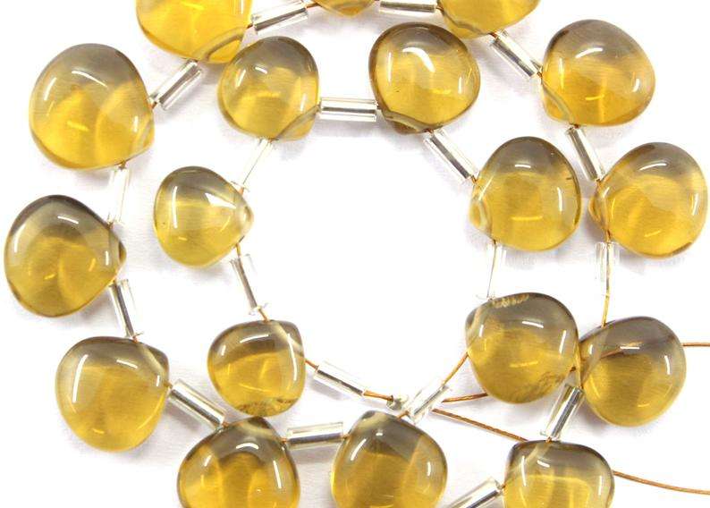 ซูเปอร์คุณภาพหมีธรรมชาติควอตซ์20ชิ้นเรียบรูปหัวใจ Semiprecious หิน Briolette ลูกปัดขายส่ง