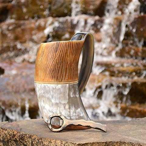 แก้วเบียร์ทำมือจากเขาควาย คุณภาพเยี่ยม เป็นมิตรต่อสิ่งแวดล้อม ลายวีกิ้ง รูปสัตว์ นางฟ้า ใช้ได้หลากหลาย รับสั่งทำตามแบบ