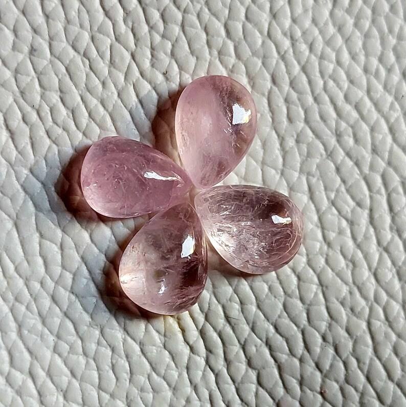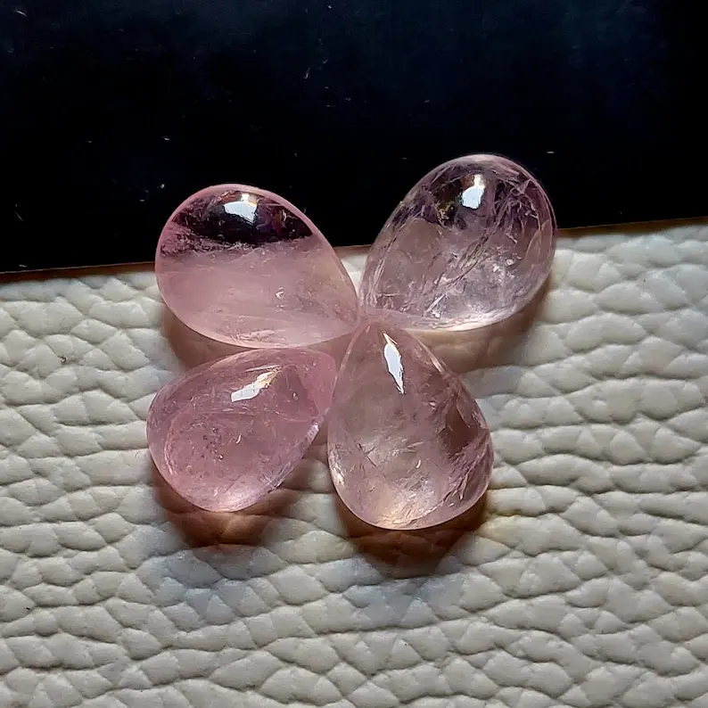 หินอัญมณีทรงลูกแพร์มอร์แกไนท์สีชมพูธรรมชาติคุณภาพดีเยี่ยมขนาด9x12x5มม. จำนวน4ชิ้นสำหรับเครื่องประดับ