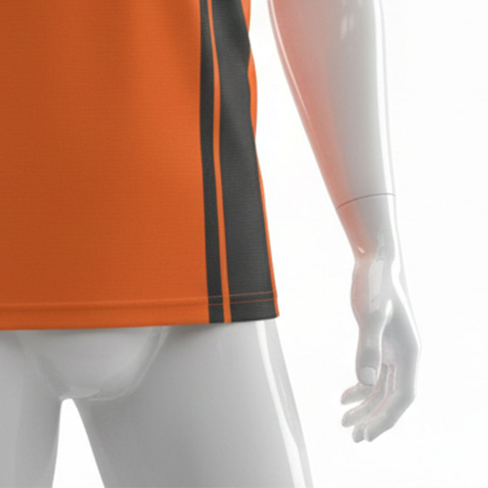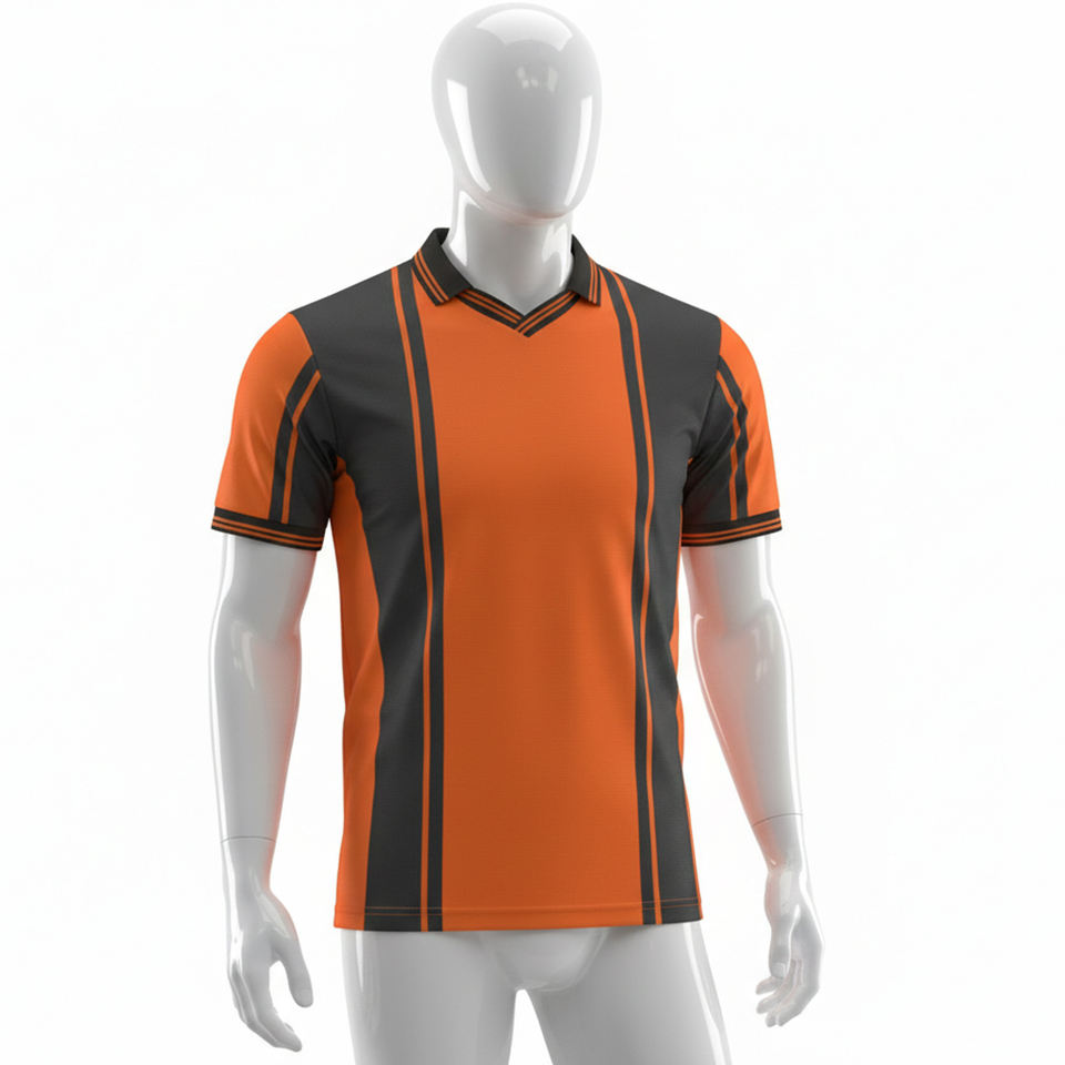เสื้อโปโลซับลิเมชั่นคุณภาพเยี่ยมสำหรับฟุตบอล พร้อมปกคอแบบถักเรียบและแถบแขนเสื้อ ผลิตจากโพลีเอสเตอร์ 100% ลายแจ็คการ์ด 150 กรัมต่อตารางเมตร