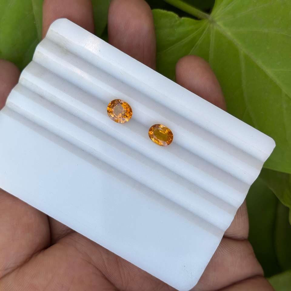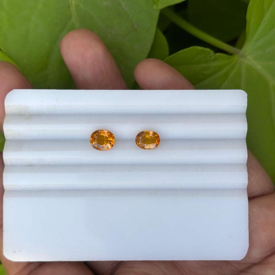 พลอยแซฟไฟร์สีส้มธรรมชาติแซฟไฟร์ทรงรีคู่ไพลินสีส้มธรรมชาติหายากสุดๆ