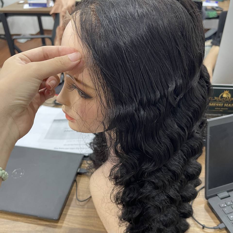 ผมต่อจากเวียดนาม100% ลดกระหน่ำวิกผมลอนลึกสีดำไม่พันกันไม่หลุดร่วงเงางามสุดๆ