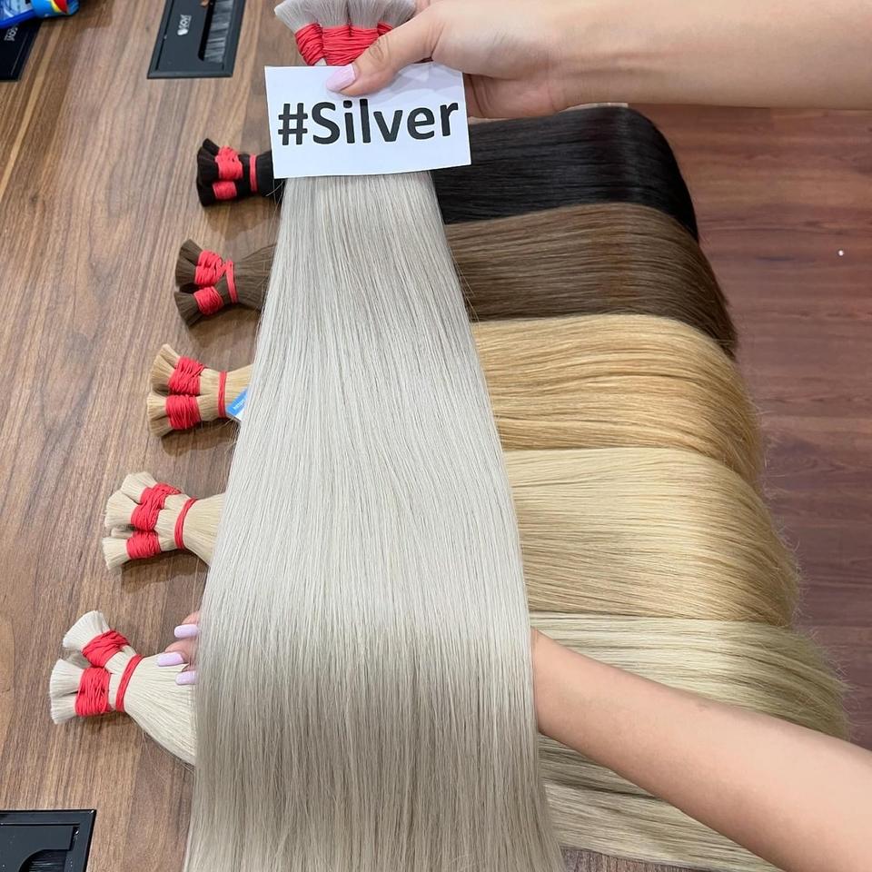 ผมต่อแบบตรงจากธรรมชาติสีฟอกขาว100% ผมคนเวียดนามไม่พันกันมีสินค้าในสต็อก