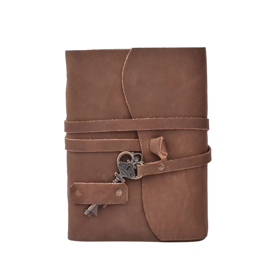 สมุดบันทึกหนังสีแทน Super Sell 2026 พร้อมกุญแจล็อคและกระดาษ 100 แผ่น สไตล์วินเทจ สมุดบันทึกหนังสีแทนสำหรับขาย