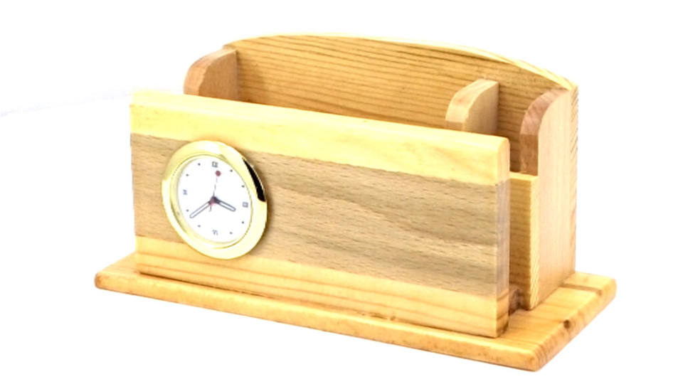 Wooden Desk Organizer With ClockProduct Name