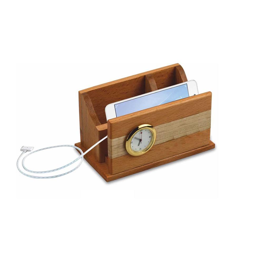 Wooden Desk Organizer With Clock
