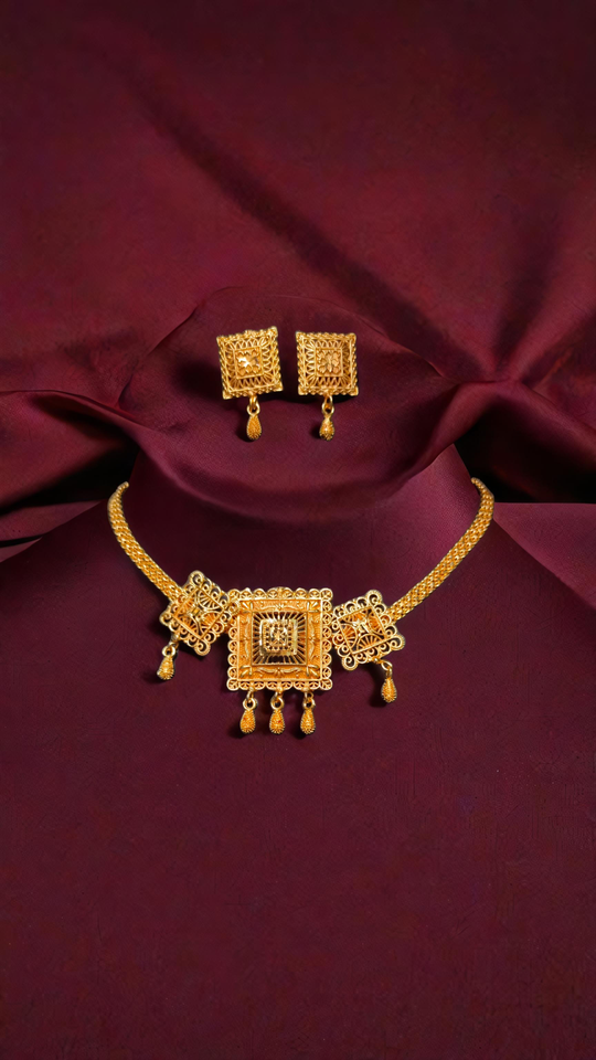 ชุดต่างหูสร้อยคอพร้อมชุดต่างหูสร้อยคอชุบทอง22K ชุดเครื่องประดับสำหรับเจ้าสาว