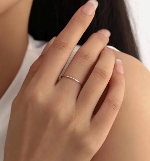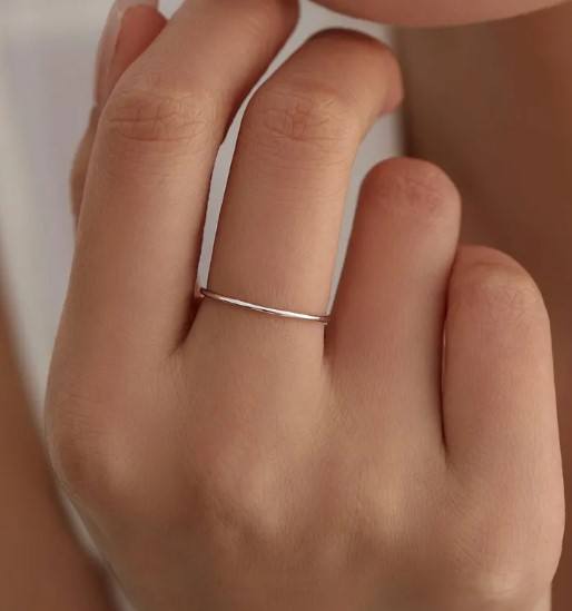 แหวนมิดิแบบเรียบหรูทำจากเงินสเตอร์ลิง แหวนมินิมอล แหวนซ้อนกันได้
