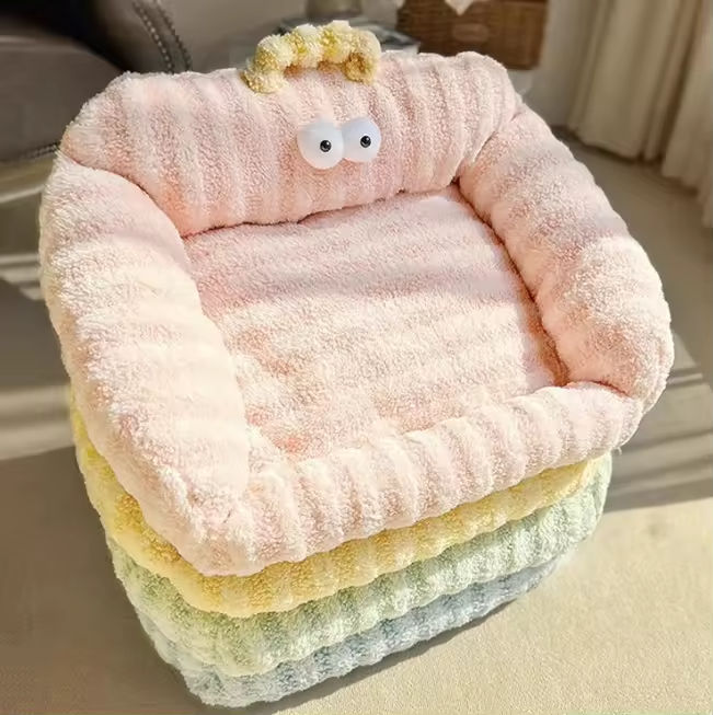 เบาะนอนสัตว์เลี้ยงรูปโดนัท นุ่มพิเศษ ลายการ์ตูนสุนัขและแมว ผ้ากำมะหยี่ขนฟู ซักได้ พกพาสะดวก