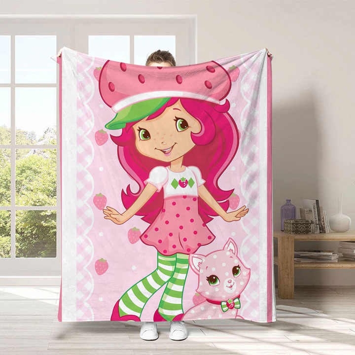 ผ้าห่มนุ่มสบายลายการ์ตูนสตรอว์เบอร์รี่น่ารักสำหรับเด็กผู้หญิง พิมพ์ลายตามสั่ง