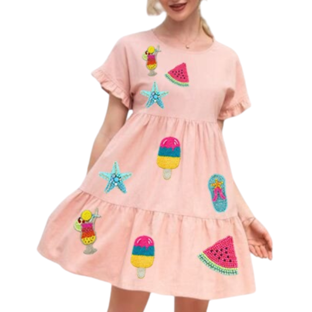ชื่อผลิตภัณฑ์:ชุดเดรสลำลองฤดูร้อนปะติดลูกปัด