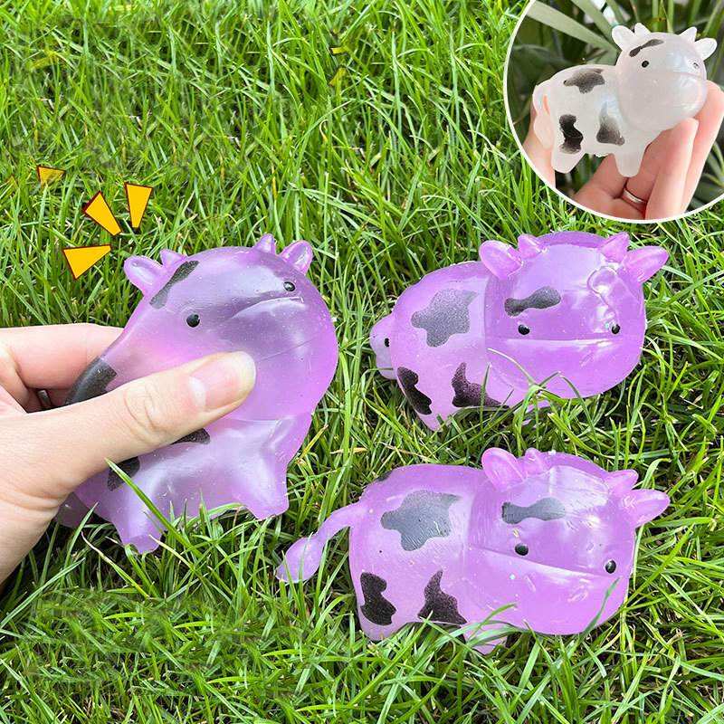 ลูกบอลบีบแกะสลักรูปวัว TPR นุ่มพิเศษ เปลี่ยนสีได้ ของเล่นบีบคลายเครียด พกพาสะดวก ของขวัญสร้างสรรค์สำหรับทุกวัย ช่วยลดความเครียด
