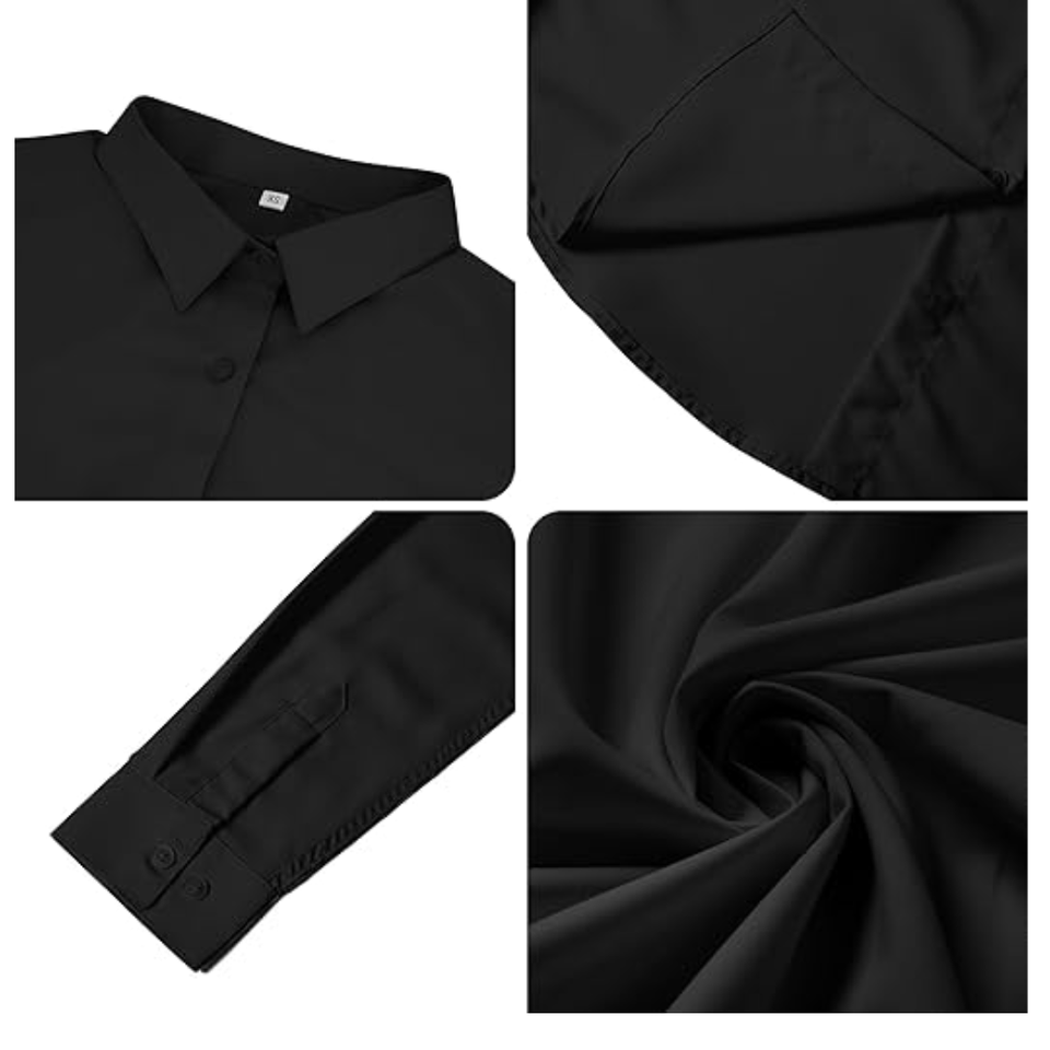 เสื้อเชิ้ตผู้หญิงแขนยาวผ้าบรอดคลอธเนื้อนุ่มพิเศษ รีดง่าย ติดกระดุม ซักได้ สีพื้น เหมาะสำหรับใส่ทำงานหรือโอกาสทางการ