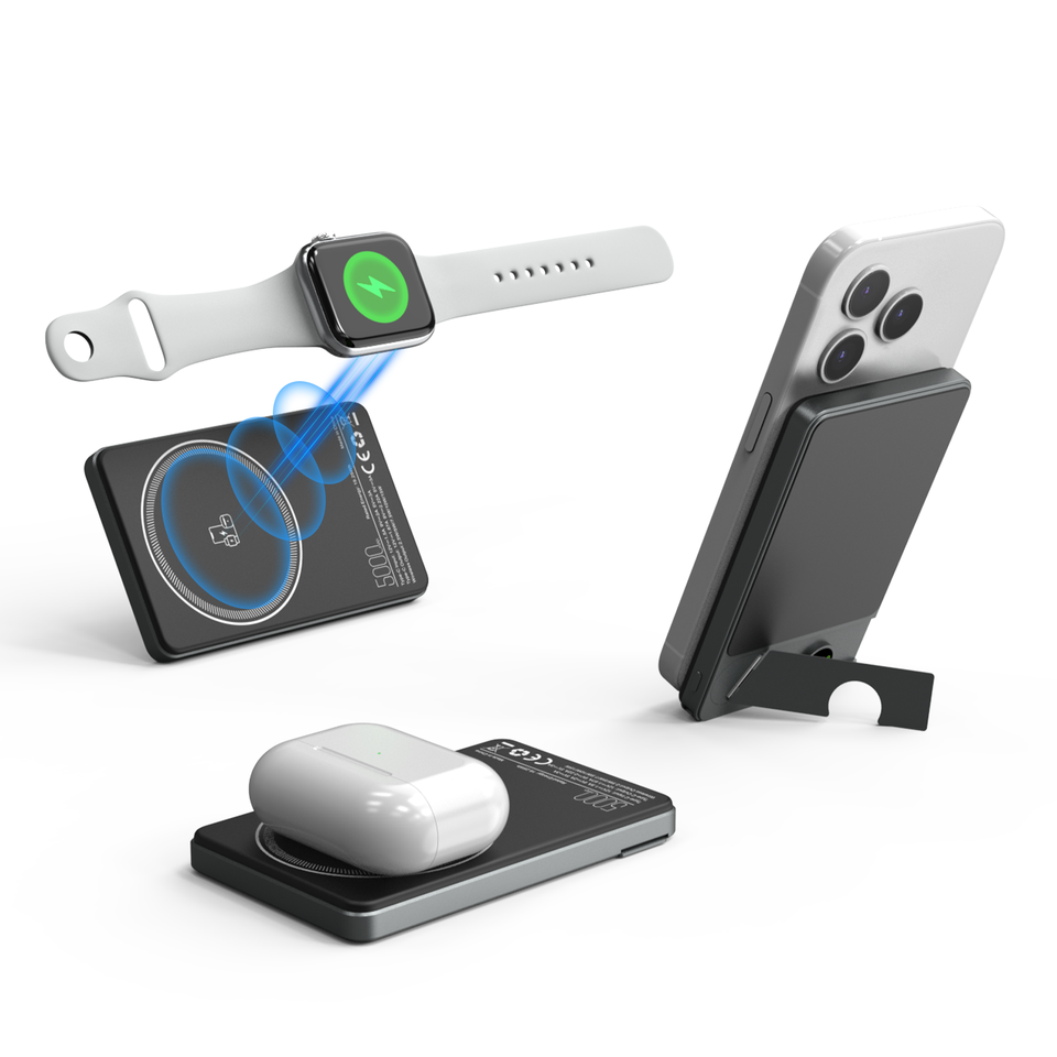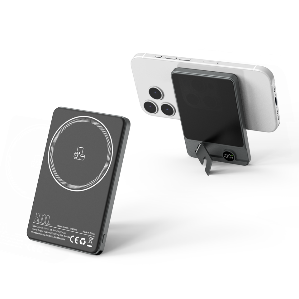 พาวเวอร์แบงค์แม่เหล็กพร้อมขาตั้งโทรศัพท์/จอแสดงผล LED/สายรัด