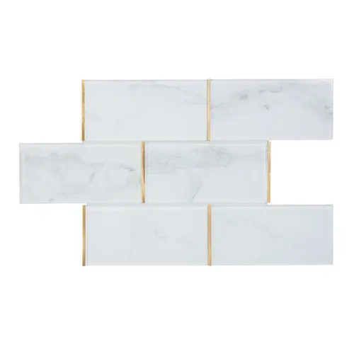Calacatta สีขาว calacatta 4 "x 8" กระเบื้องแก้วใต้ดินที่มีการตกแต่งด้วยทองขัดเงาสำหรับผนังกันน้ำมันทั้งภายในและภายนอก