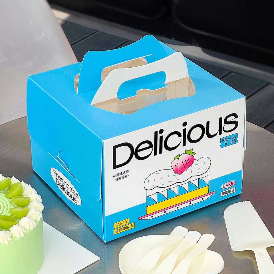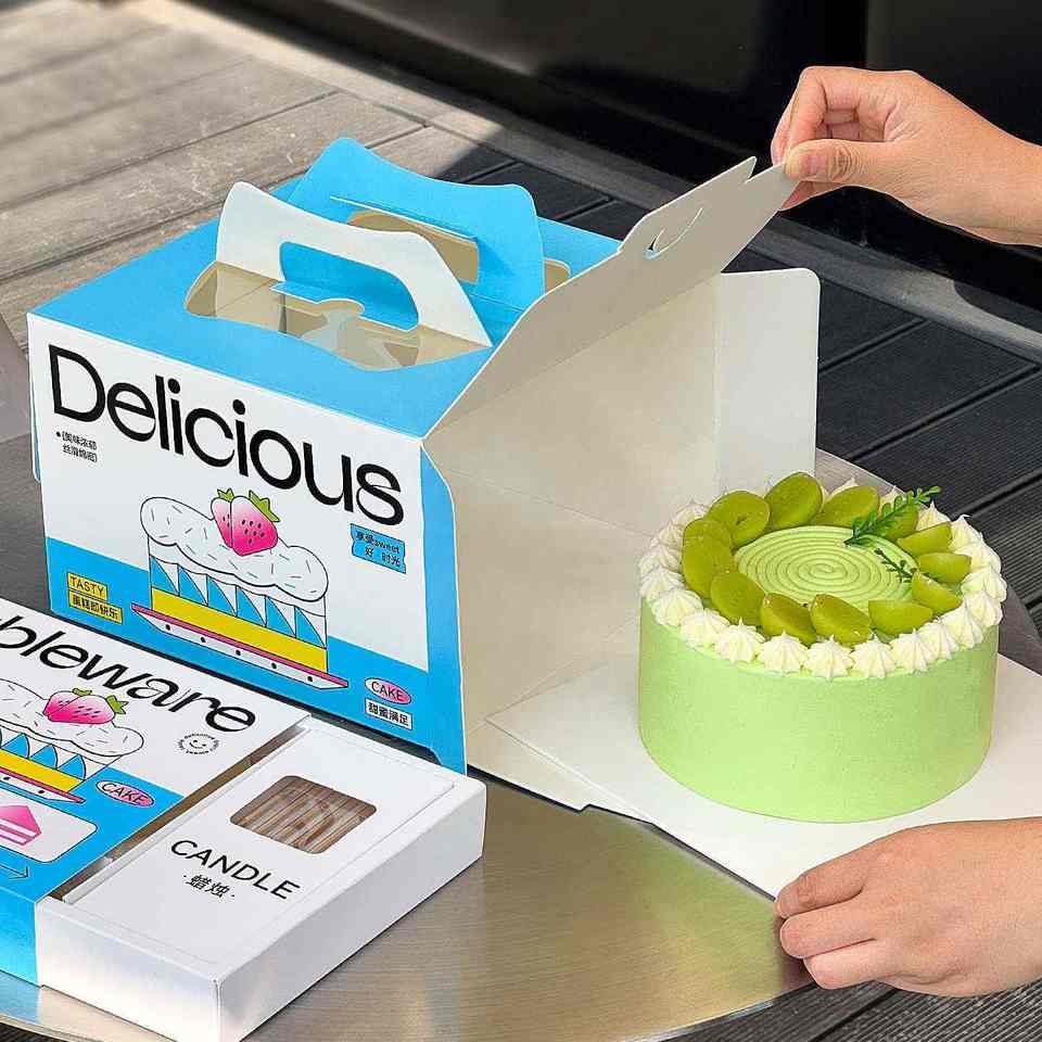 กล่องกระดาษเค้กเป็นมิตรต่อสิ่งแวดล้อม พร้อมโลโก้ OEM สำหรับบรรจุภัณฑ์เบเกอรี่ คาเฟ่ และขนมหวาน, บรรจุภัณฑ์อาหารแบรนด์เนมสำหรับร้านเบเกอรี่ คาเฟ่ ร้านอาหารมื้อสาย