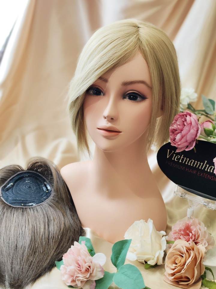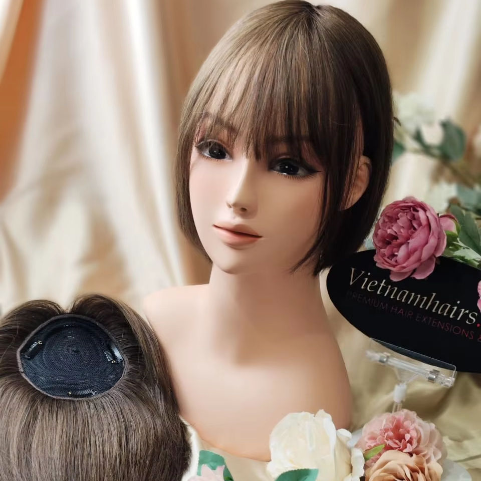 แฮร์ท็อปเปอร์ผมคนแท้จากเวียดนามสำหรับต่อผมมนุษย์ทำจาก100% หนังกำพร้าแบบตรง