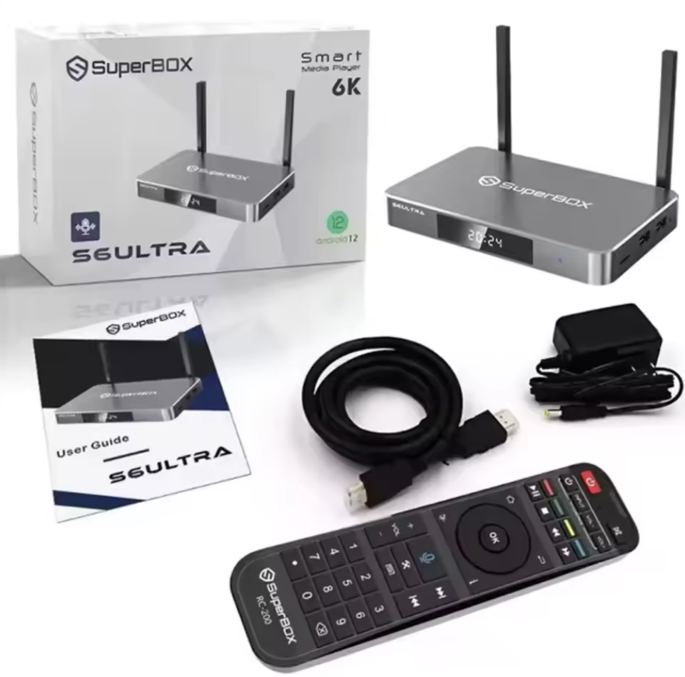 กล่องทีวี Super_box S6 เครื่องเล่นมีเดีย 4GB+128GB Wi-Fi 6 พกพาสะดวก รับประกัน 3 ปี เสียงรอบทิศทาง 2.1 แชนแนล