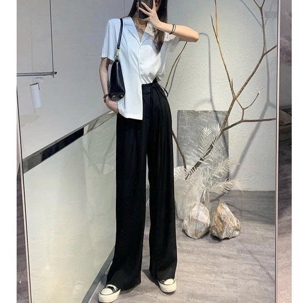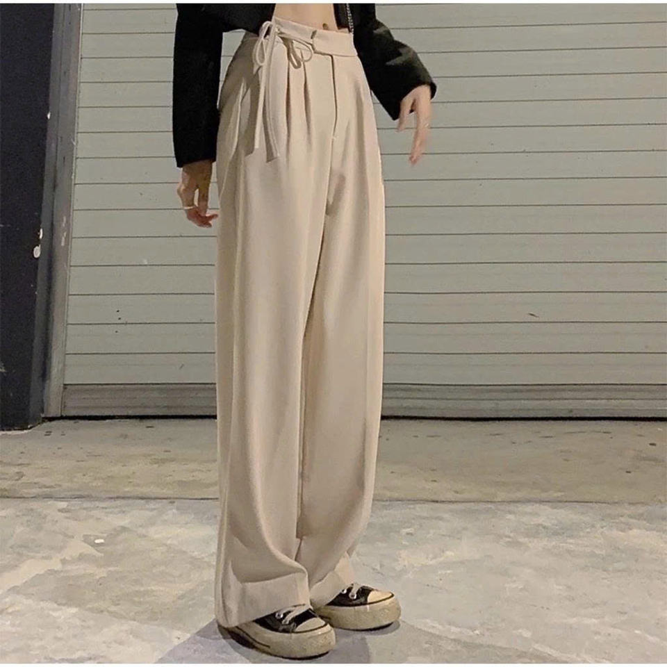 กางเกงขากว้างสไตล์ออลจังสุดฮอต มีเชือกผูกข้างเดียว กางเกงเอวสูง