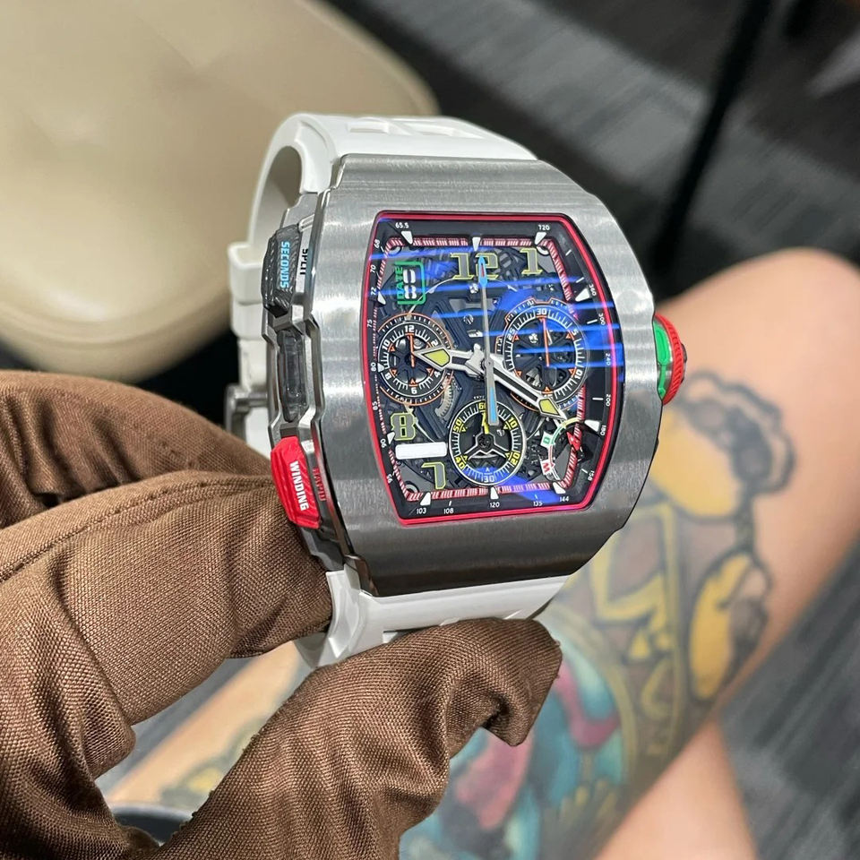 นาฬิกาข้อมือผู้ชายดีไซน์หรูหรา น้ำหนักเบาพิเศษ โครงสร้างโปร่ง กันน้ำ ระบบจักรกลอัตโนมัติ รุ่น 65-01