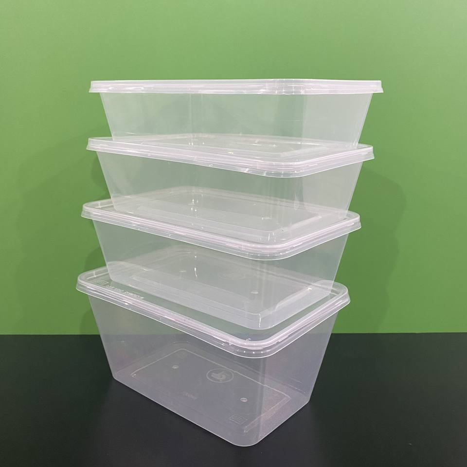 ภาชนะบรรจุอาหารพลาสติก750มล. ทรงสี่เหลี่ยมผืนผ้าแบบใช้แล้วทิ้ง550แบบใสพร้อมฝาปิด