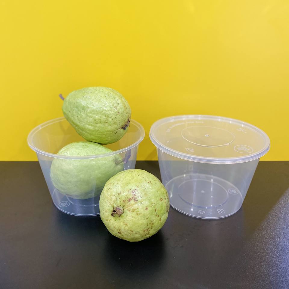 กล่องพลาสติกใส่อาหารทรงกลมขนาด16/20ออนซ์พร้อมฝาปิดสำหรับเก็บอาหารกล่องใสใช้กับไมโครเวฟได้