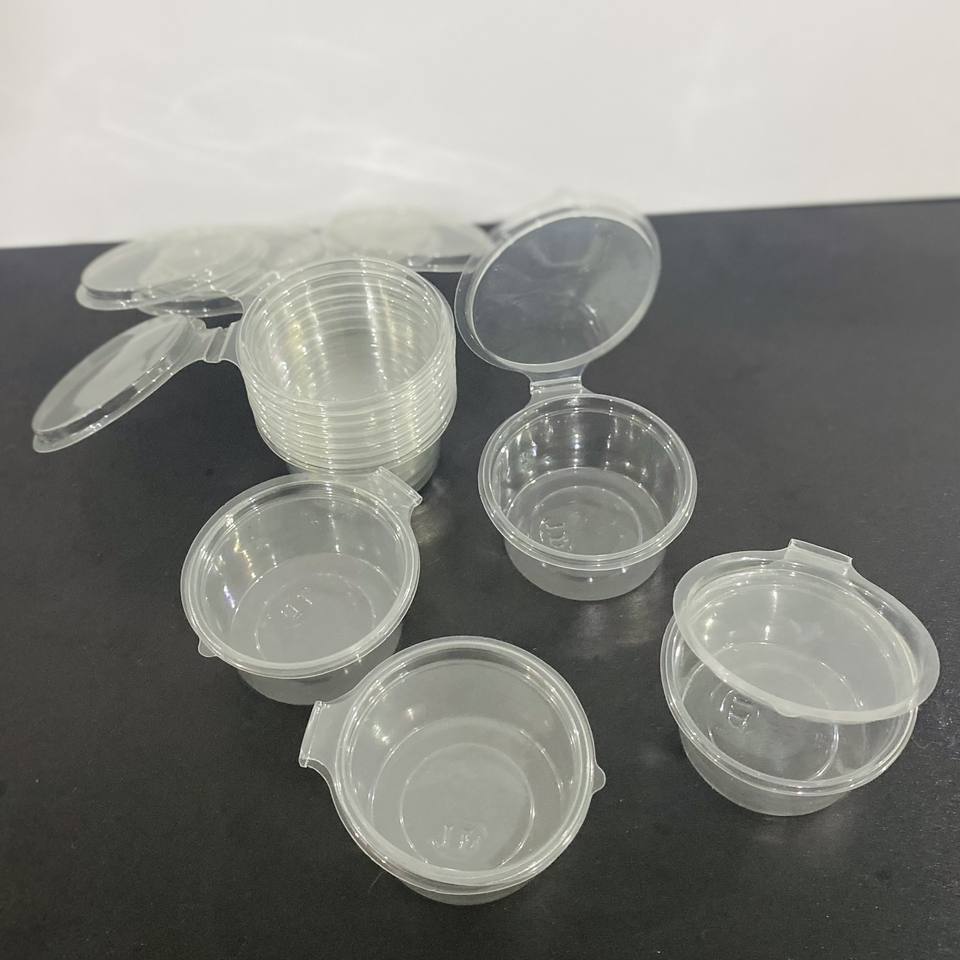 ถ้วยซอสพลาสติก PET คุณภาพเยี่ยม ราคาโรงงานถูก ขนาด 2 ออนซ์ 60 มล. แบบใช้แล้วทิ้ง พร้อมฝาปิดแบบมีบานพับ ผลิตในเวียดนาม