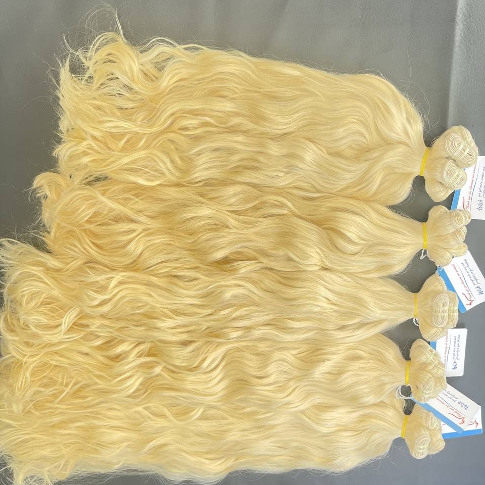 ผมต่อแบบหยักศกธรรมชาติสีบลอนด์ผม100% หยักศกแบบเวียดนามแวววาวสุดๆไม่พันกันมีจำนวนมาก