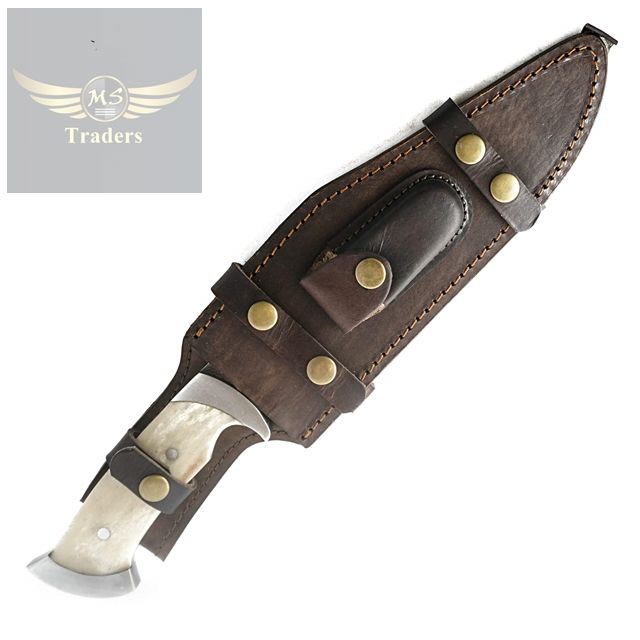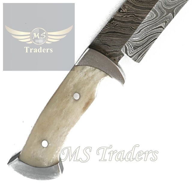 มีดล่าสัตว์ทำมือเหล็กดามัสกัสที่คมชัดพร้อมปลอกหุ้มหนัง MS45
