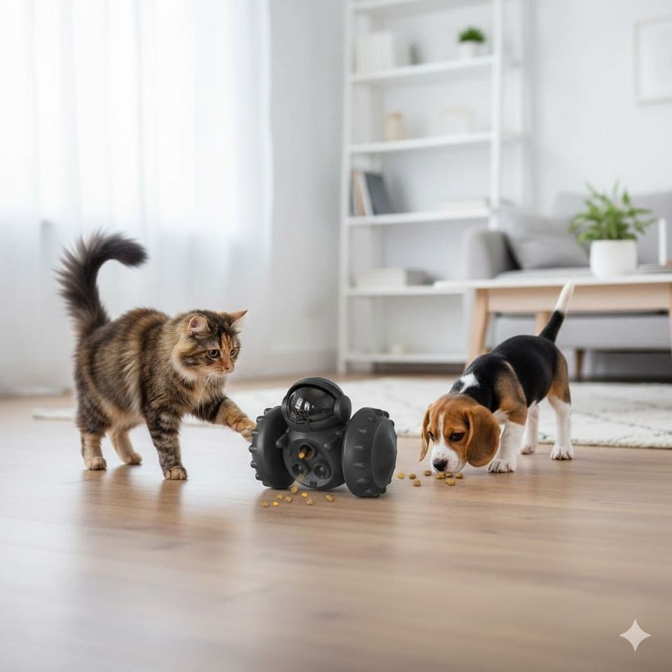 เครื่องให้อาหารสัตว์เลี้ยงแบบโรบอท SuperBuy ทำจากวัสดุ ABS และ PC แบบหมุนได้ สำหรับสุนัข เป็นมิตรกับสิ่งแวดล้อม ช่วยฝึกการกินและควบคุมปริมาณอาหาร