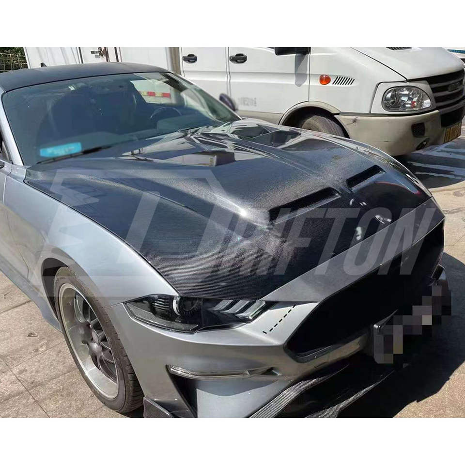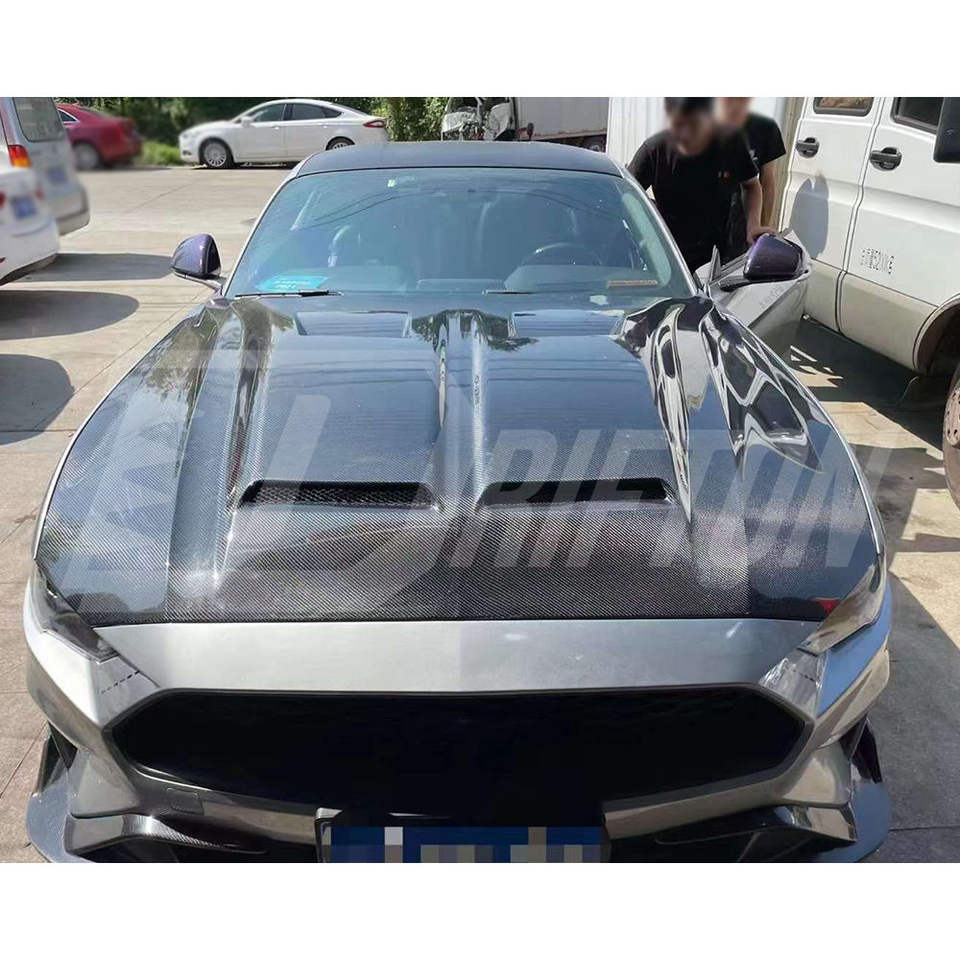 ฝากระโปรงคาร์บอนไฟเบอร์ทรง SuperSnake รุ่นใหม่ พร้อมลายทอ 3K/6K/12K และป้องกันรังสียูวี สำหรับรถมัสแตง ปี 2018-2023