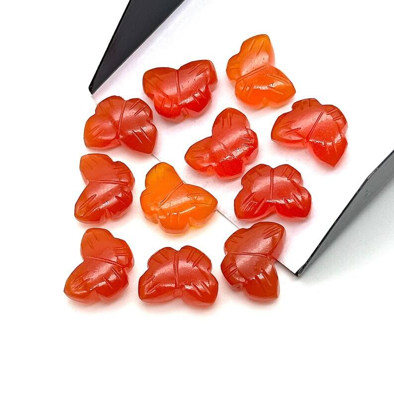 ลูกปัดผีเสื้อแกะสลักด้วยมือจากคาร์เนเลียนคุณภาพเยี่ยม ขนาด 13 มม. รูปผีเสื้อแกะสลัก