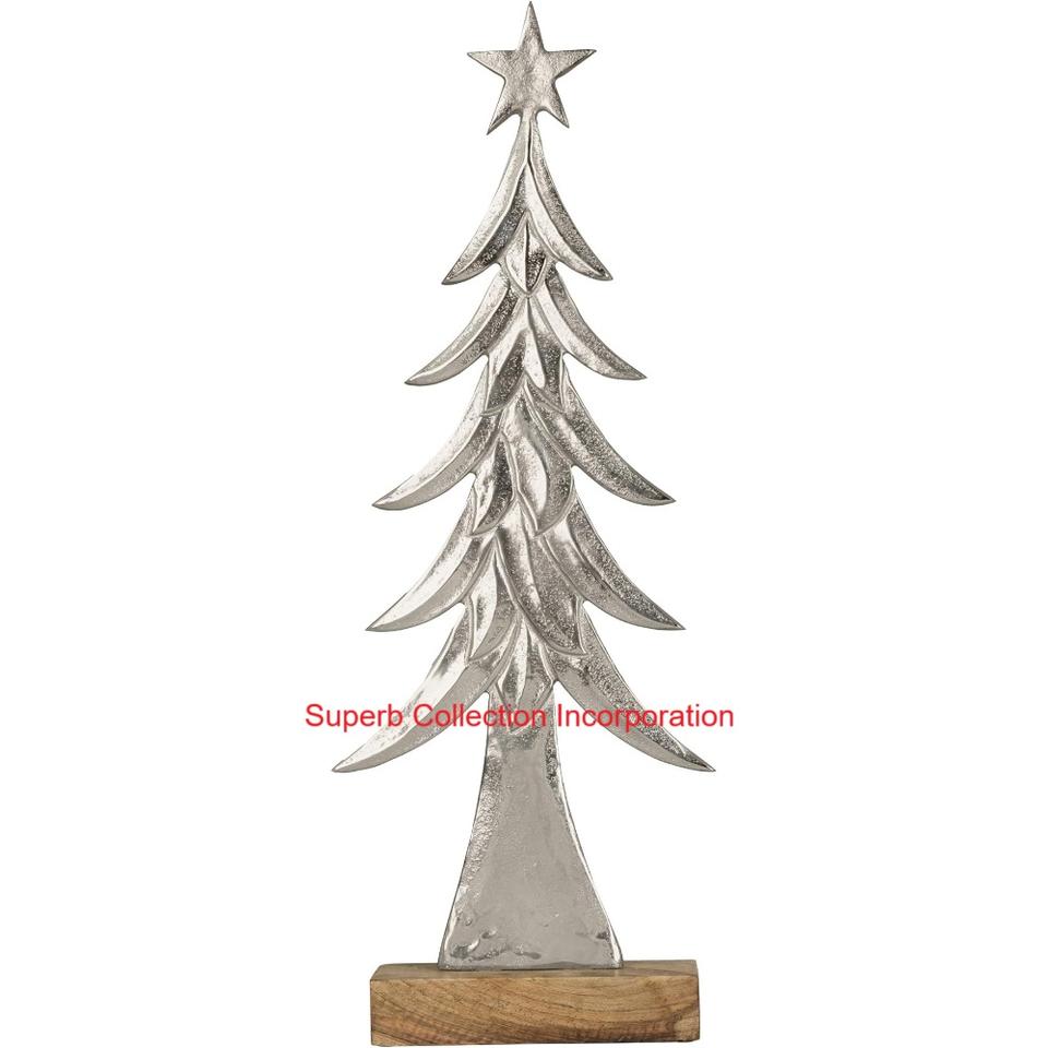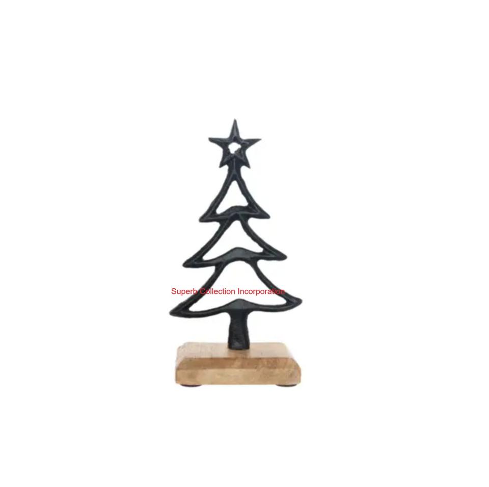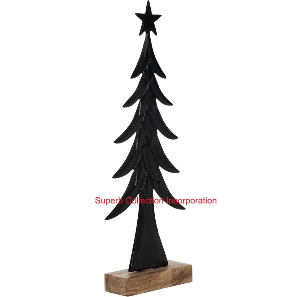 ของสะสมที่ดีเลิศรูปปั้นต้นคริสต์มาสทำจากโลหะสีดำทันสมัยที่ฐานไม้ธรรมชาติตกแต่งโต๊ะในวันหยุดอย่างหรูหรา
