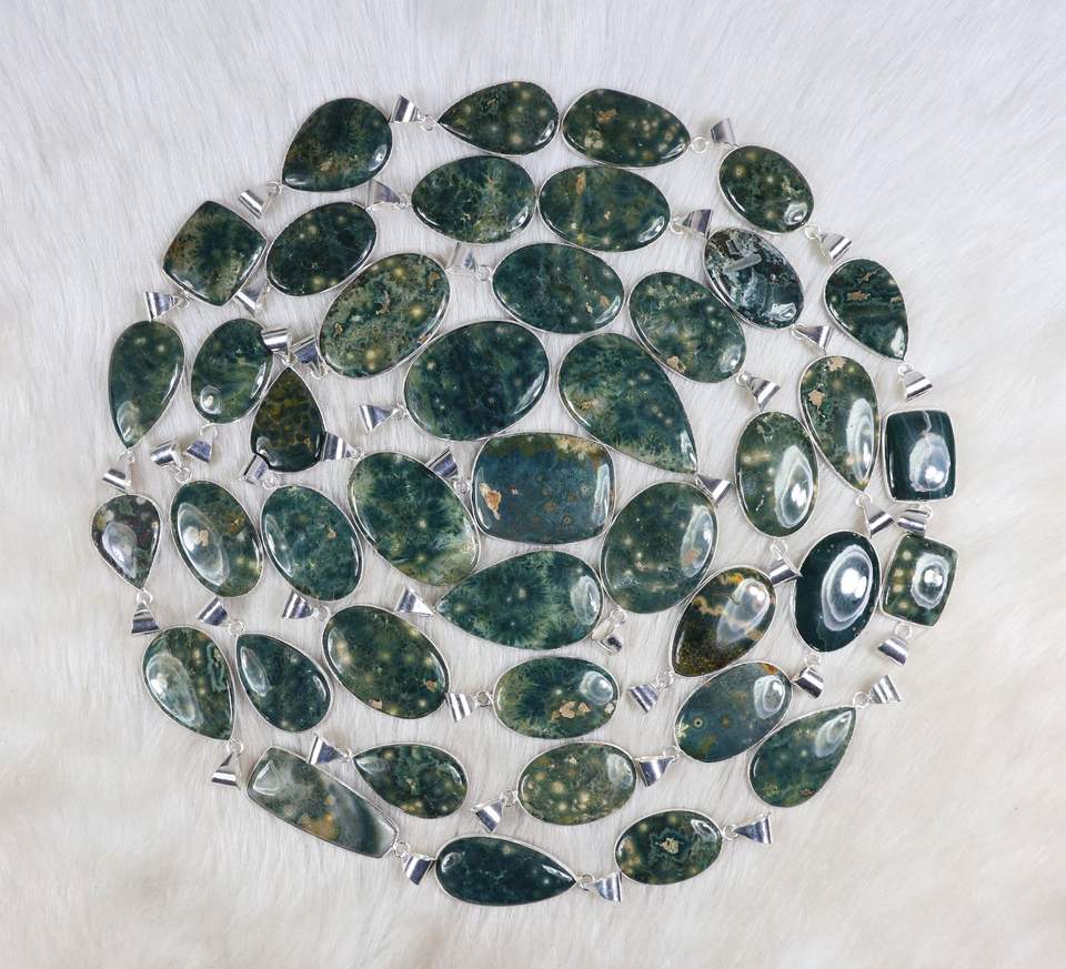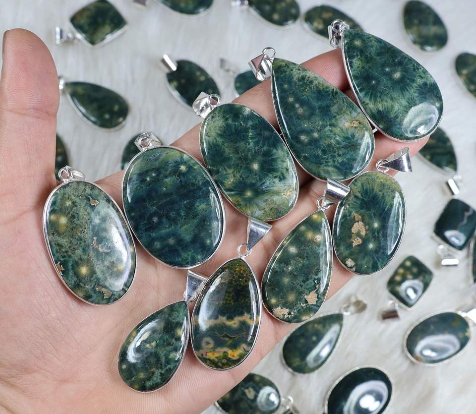 Superb Genuine Ocean Jasper Large Cabochon Multi Shape Bezel Setting Steel Less Steel Alloy Handmade Pendant Fashion Jewelry