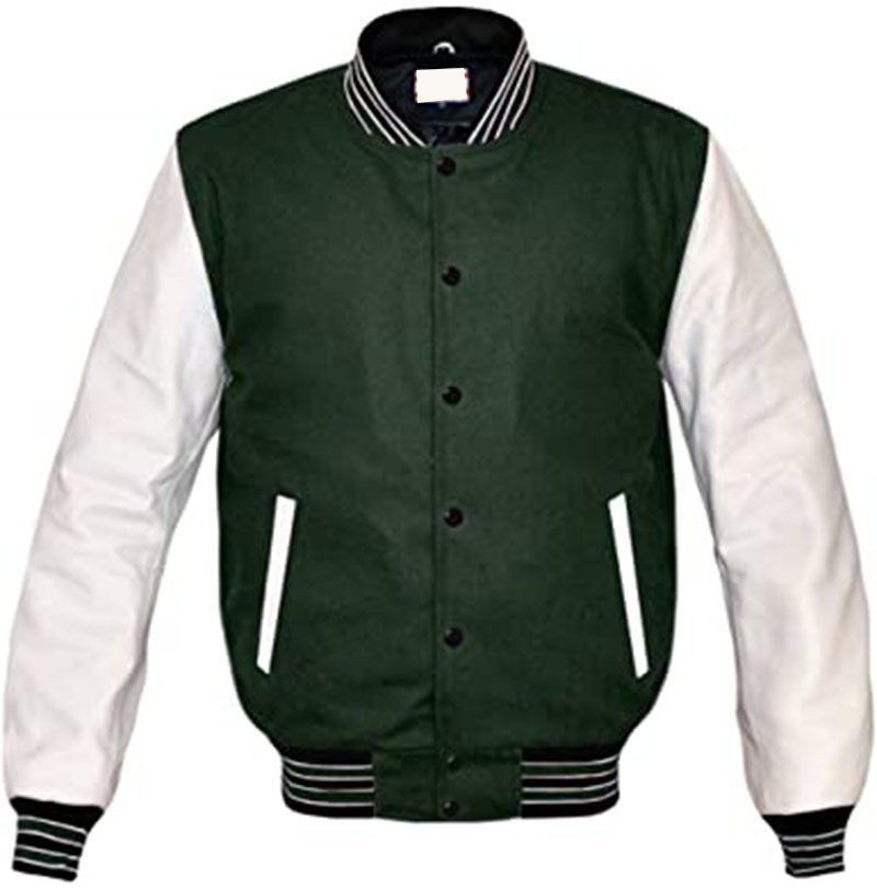 เสื้อแจ็คเก็ตวาร์ซิตี้หนังแท้สีขาวคุณภาพเยี่ยมสำหรับผู้ชาย แบบ Letterman ตกแต่งด้วยผ้าขนสัตว์ พร้อมบริการออกแบบโลโก้ตามสั่ง