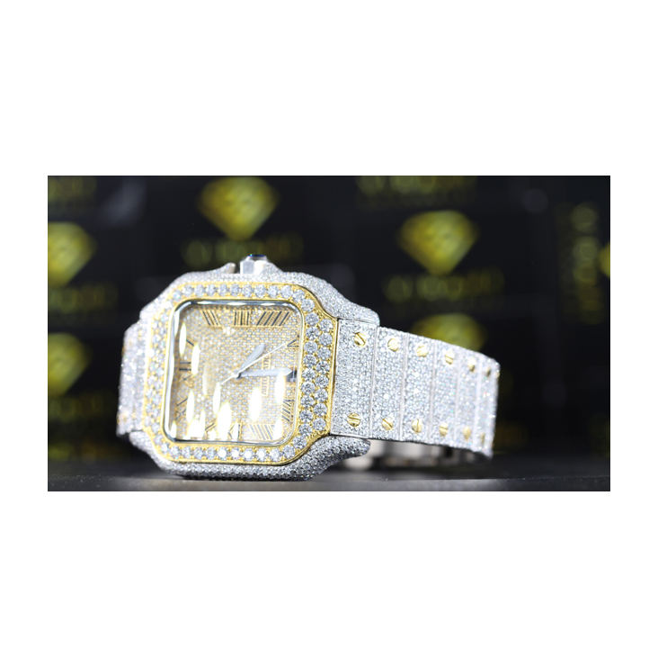 นาฬิกาอัตโนมัติโบราณ VVS ความคมชัดเพชร Moissanite กรอบสแตนเลสคริสตัล