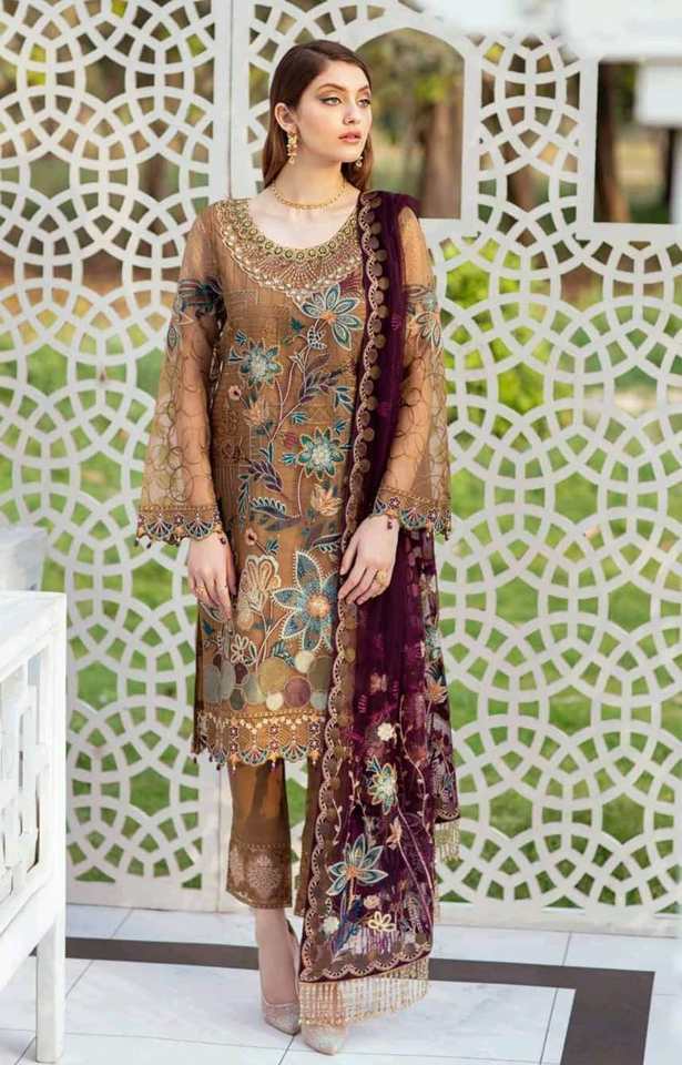 Superb Quality Chiffon Heavy Embroidery Neck With Handwork and Stone Work by WS INTERNATIONAL