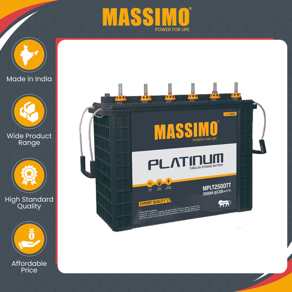 Superb Quality Made in India MASSIMO 12V 250Ah Tall Tubular Lead Acid Power Storage Battery for Genuine Wholesaler on Sale