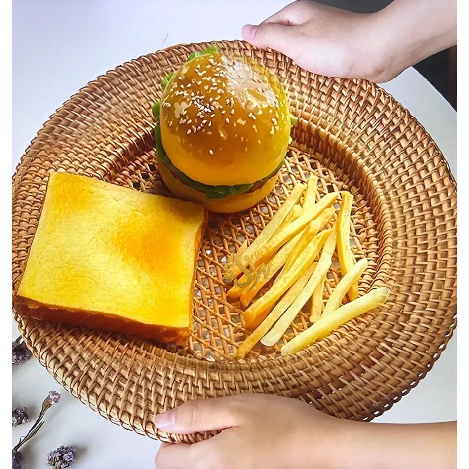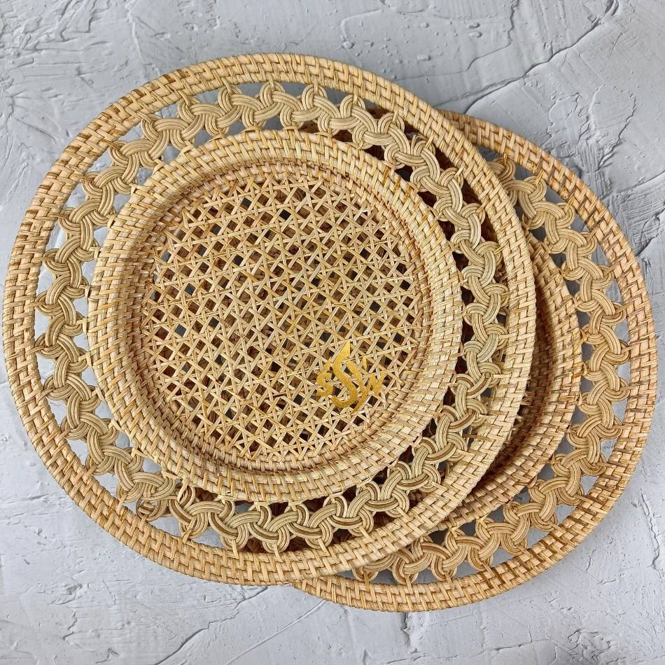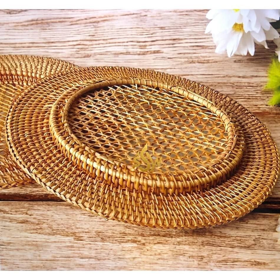 จานหวายสำหรับใส่อาหารจานเสิร์ฟอาหารจานหวายสำหรับเครื่องครัวโต๊ะ